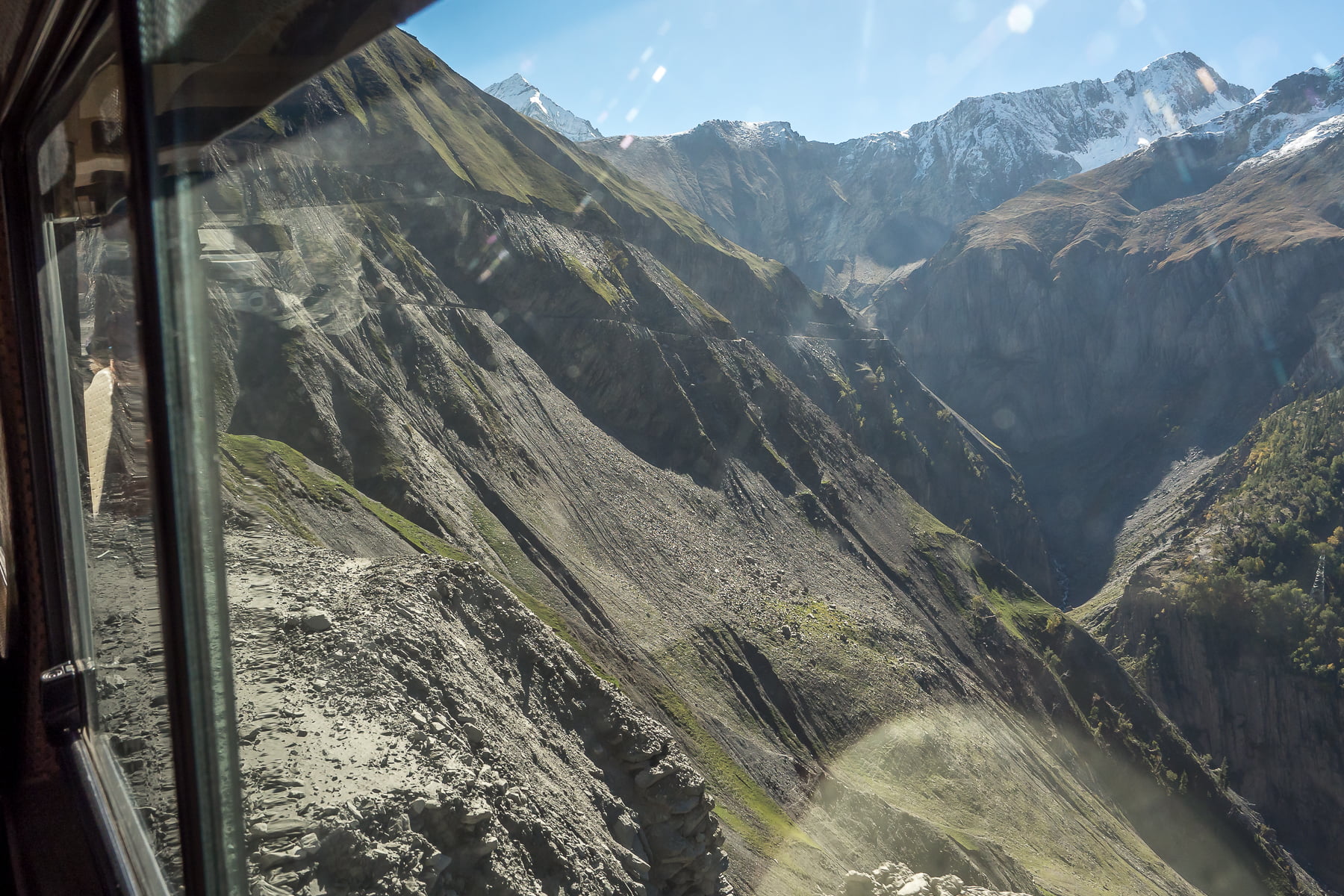 Ei tuolla huristellessa oikein voinut muuta kuin luottaa siihen, että kuski osaa hommansa. Muutamat tosin autossamme vaihtoivat paikkaa rotkon puolelta toiselle… 🙂