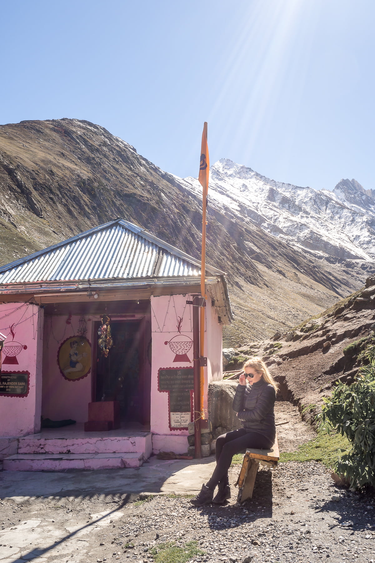 Leiritauon jälkeen lähdemme laskettelemaan verkkaisesti alaspäin, kunnes saavumme Intian armeijan miehittämällä alueelle. Nykyisin alueella on armeijan tukikohdan lisäksi muistomerkki Pakistanin armeijan väijytyksessä surmansa saaneiden sotilaiden muistolle, ja kieltämättä vähän mieltä kylmää kun katselen sotilaan osoittamaa vuoren rinnettä. Vain muutaman kymmenen metrin päässä on Pakistan, ja ylhäältä vuoristosta heille avautuu näköyhteys Intian puoleisille tasaisemmille vuoristoalangoille. Autosaattueita suojellakseen Intian armeija onkin rakentanut yhteen kohtaan korkean betoniaidan, joka kuulema estää Pakistanin armeijaa näkemästä millaisia autoja tiellä kulkee, puhumattakaan autojen sisällä istuvista ihmisistä. No näiltä väijytysalueilta pääsemme turvallisesti eteenpäin, ja saan myös kuulla oppaaltamme, että alueen tilanne on ollut rauhallinen viimeisien vuosien aikana, mutta Intia haluaa kuitenkin tarkasti vartioida raja-alueitaan. Varmuuden vuoksi kilisyttelen kuitenkin toistamiseen pienen buddha-temppelin vierestä löytyviä eri kokoisia kelloja, kuin rauhan merkiksi konsanaan.
