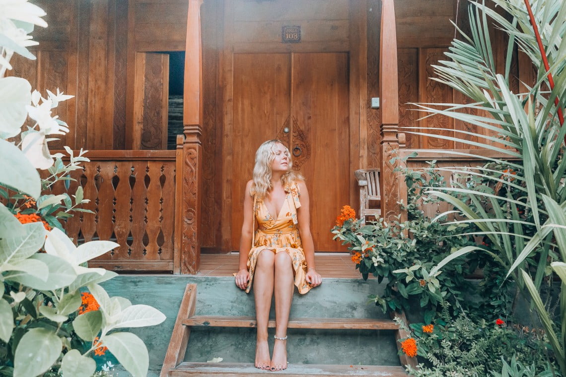 Aiemmilla parilla kerralla olen vaihdellut majoitustani D’Canggu homestayn ja The Chillhousen välillä, mutta nyt tuntui siltä, että halusin testata paria uutta majapaikkaa. Niinpä ensimmäisen viikon Canggussa majoituin aivan D’Canggu homestayn naapuriin Pondok Lulik Homestay:hin, jossa perinteiseen tyyliin rakennettu puinen bungalowmainen joglo omalla terassilla ja vehreällä puutarhalla houkutteli. Eikä kyllä olisi majoitus voinut enempää nappiin mennä, sillä ensinnäkin majapaikan sijainti oli täydellinen Batu Bolongin ytimessä ja toisekseen tuossa terassilla tuli kestitettyä uusia Bali-kavereitani ilta jos toinenkin.