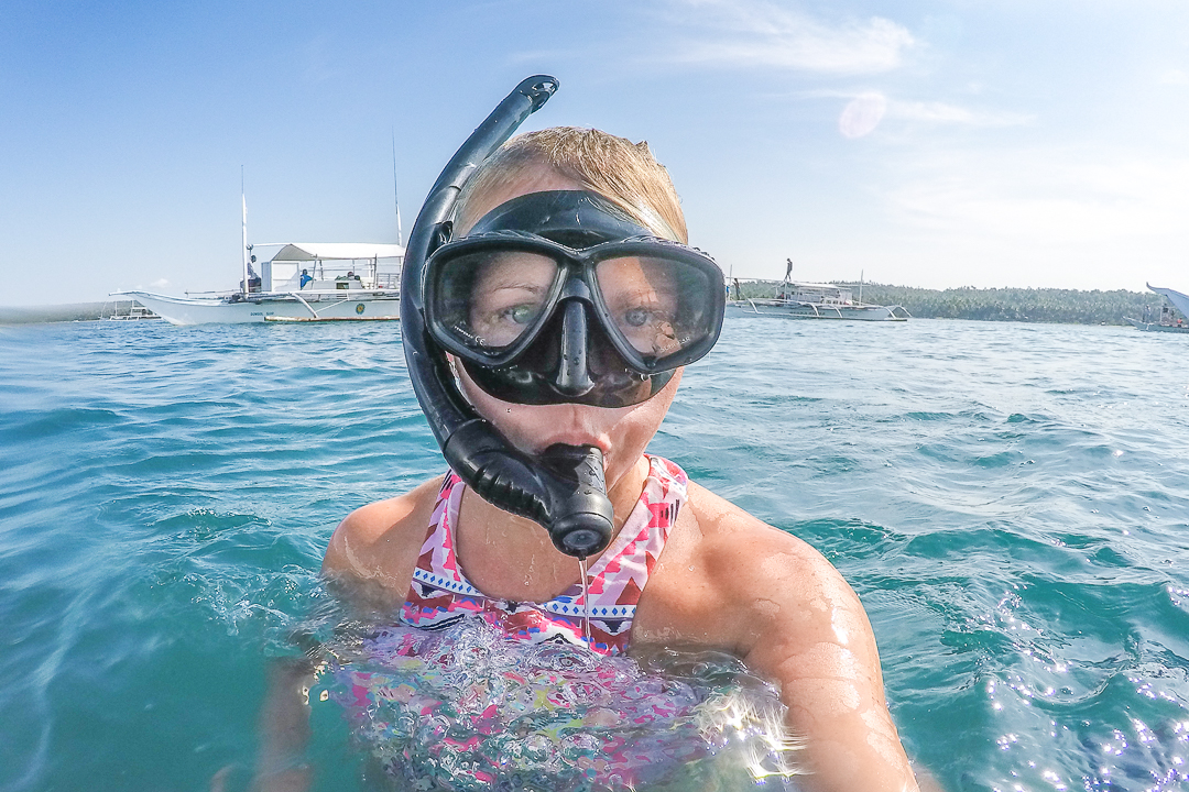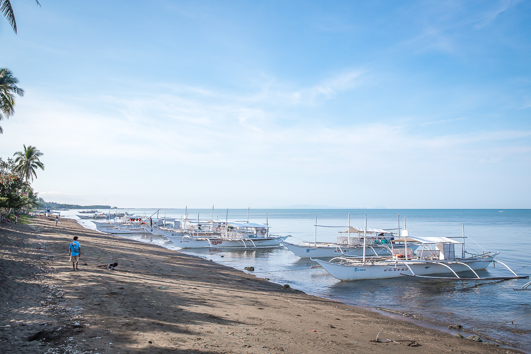 Aamulla suuntasimme ystäväni Jonnan kanssa ennen seitsemää resortin vieressä olevalle valashairetkiä järjestävän virallisen turistitoimiston pihaan. Turistit jaettiin pieniin kuuden hengen ryhmiin ja snorklausvälineiden sovituksen jälkeen meidät ohjattiin perinteisten filippiiniläisten puupaattien kyytiin. Henkilökunta koostui kapteenin lisäksi parista apupojasta sekä oppaasta, joka tulisi myös uimaan kanssamme. Siinä vaiheessa kun meidät istutettiin puupaarrun päälle odottamaan jump-käskyä, oli jännitys kaikilla varmasti käsin kosketeltavissa. Vähän siinä taisin jo etukäteen panikoida, että miten tulisinkaan reagoimaan nähdessäni nämä merten jättiläiset pinnan alla pulikoidessa. Saimme kuitenkin odotella veteenmenoa hyvän tovin, sillä aiemmin bongattu valas olikin jo suunnannut muille vesille. Uuden paikallistamisen aikana korjailin snorklausmaskiani varmaan kymmenen kertaa, ennen kuin lopulta ponkaisin kauhusta jäykkänä veteen oppaan perässä.