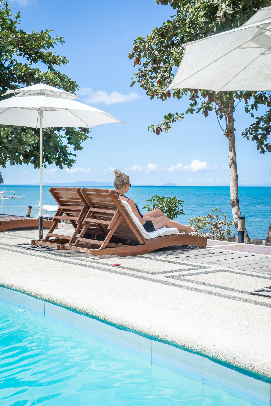 Donsol Bayhin matka alkoi Manilan kentältä sisäisellä lennolla Legazpin lentokentälle, josta majapaikkani Vitton & Woodland Beach Resortin paku otti matkalaiset kyytiinsä. Pieniä kiemuraisia teitä pitkin matka autolla Donsoliin kesti reilun tunnin, mutta auton kyydissä keinuessa matka tuntui kyllä paljon pidemmältä! Onneksi perillä resortissa pääsi karistamaan hetkessä matkauupumuksen pois kauniilla uima-altaalla loikoillen ja rauhallista merimaisemaa tuijotellen. Vatsanpohjassa kuitenkin nipisteli tämän tästä – seuraavana aamuna vuorossa olisi vihdoin snorklaushetki valashaiden kanssa!