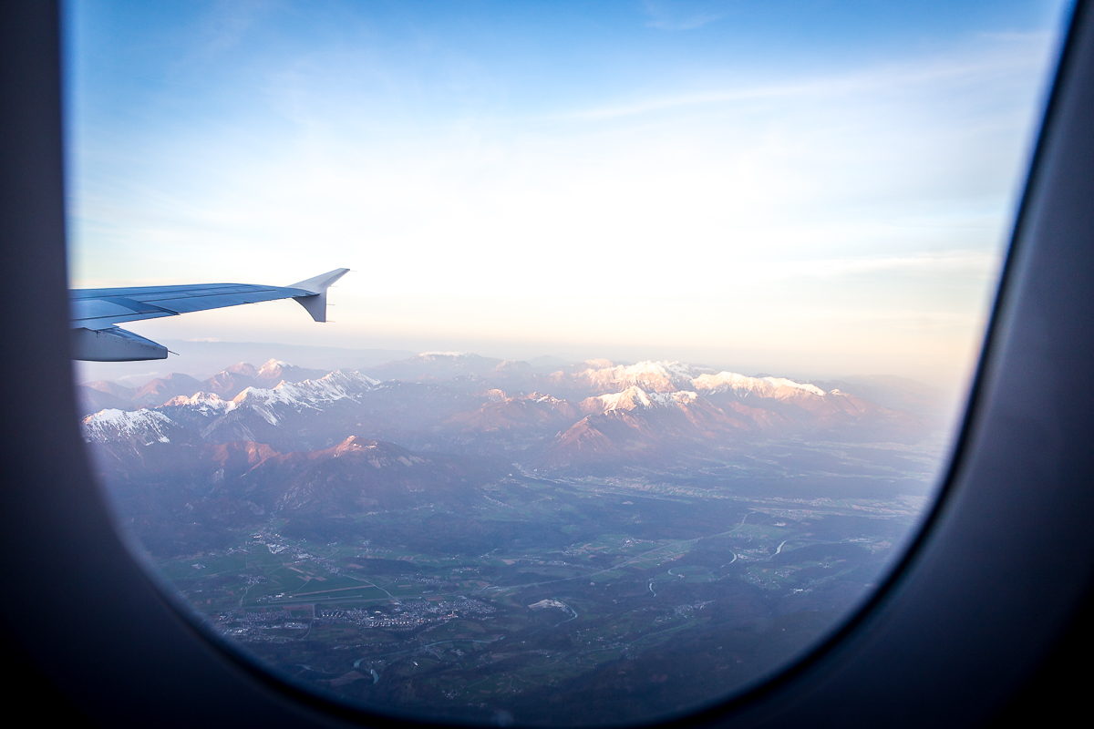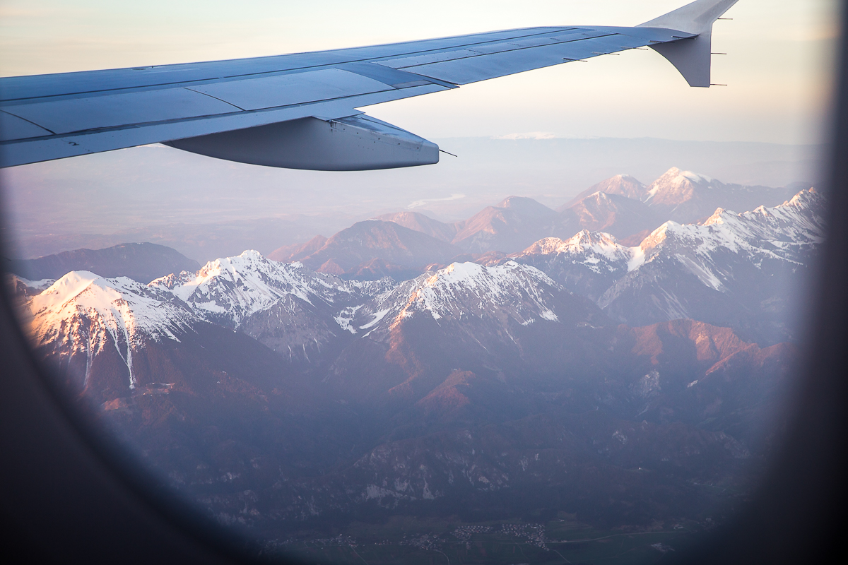 Psst. Kuvat on napattu Alppien yltä aiemmalla Slovenian matkalla, nimittäin tällä lennolla vetelin sikeitä meilkein koko parin tunnin lennon…