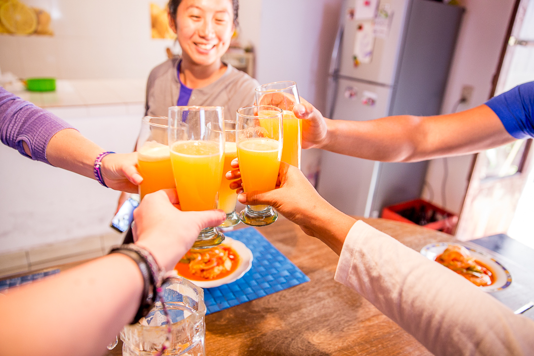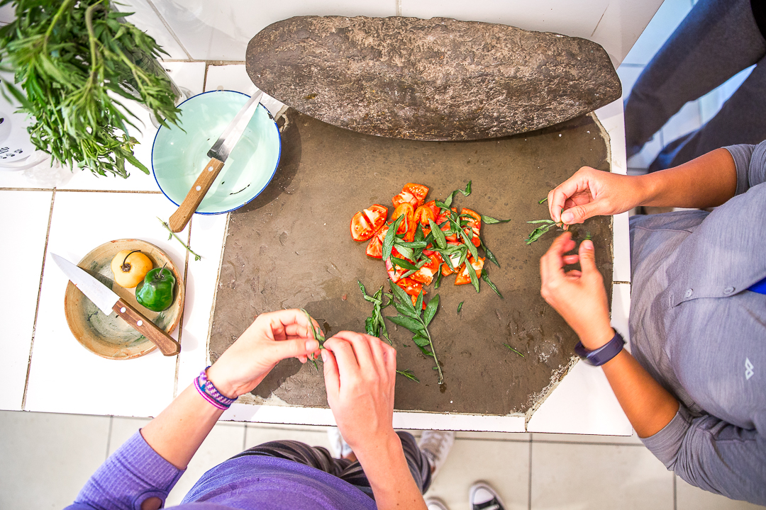 Perusateria Boliviassa koostuu usein riisistä, perunoista tai quinoasta esimerkiksi kanan ja papujen kera. Yksi ehdoton kokeilemisen arvoinen paikallisherkku ja helppo eväs on jokaisessa katukojussakin myytävät pasteijamaiset Saltenas, joiden sisällä on erilaisia täytteitä kuten kasvis- tai kanatäyte. Kokkauskurssilla pääsin valmistamaan Papas Rellenas ”täytettyjä perunoita”, jotka maistuivat mielettömän hyviltä itsetehdyn chilikastikkeen kanssa! Suosittelenkin ehdottomasti osallistumaan kokkauskurssille ja sitä kautta maistelemaan aitoja Bolivian makuja. Suuremmista kaupungeista löytyy myös erilaisia ravintoloita ja erityisesti kahvilakulttuuri kukoistaa. Eikä korkeassa ilmanalassa kannata unohtaa paikallista superfoodia, eli kokapensaan lehdistä valmistettua vihreää teetä, joka auttaa mm. hengitysvaikeuksiin.
