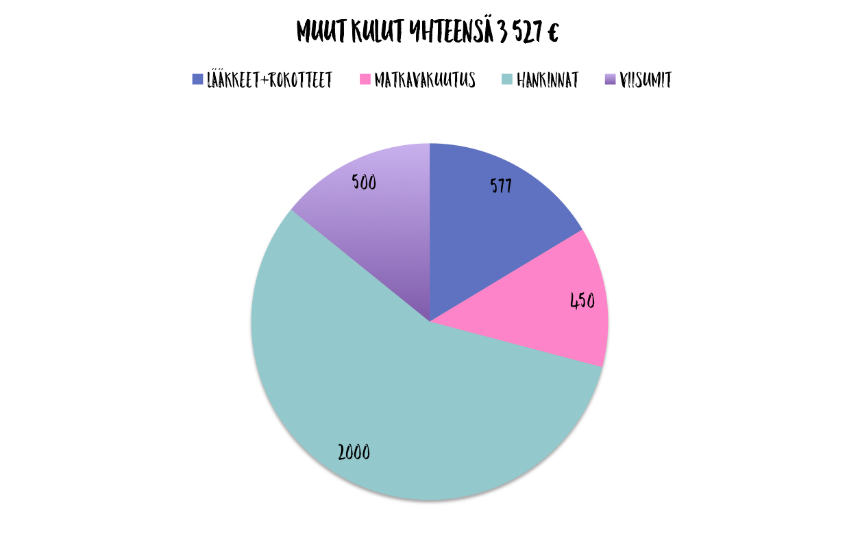 Lisäksi reissun muut kustannukset olivat alkuperin arvioimaani 2 500 € suuremmat reilulla 1000 eurolla.