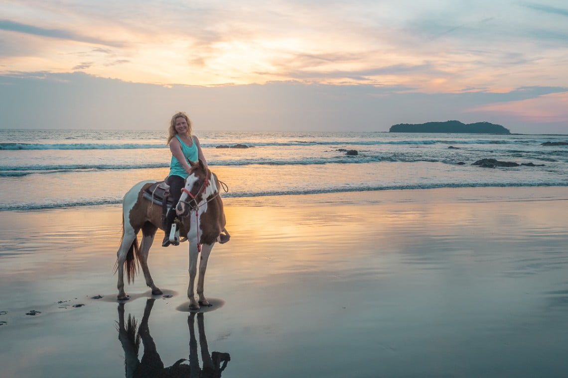 Santa Catalinassa kokonnuimme surffikavereiden kanssa jokaisen päivän päätteeksi majapaikan baariin ihailemaan meren taa laskevaa aurinkoa. Mutta yksi ilta oli erilainen, sillä päätin lähteä auringonlaskun aikaan ratsastusretkelle lähirannalle. Auringon alkaessa painumaan alaspäin, päivän helle alkoi taittumaan lempeän illan lämpöön, kun paikalliset cowboyt satuloivat minulle Sheyla-nimisen läikikkään tamman. Ratsastusretkelle mukaani lähti surffiopettajani Sergio, joka kuulema oli kasvanut lapsuutensa argentiinalaisella farmilla hevosten parissa ennen kuin lakiopiskelut ja -työt veivät ensin Buenos Airesiin sykkeeseen sekä sitä kautta lopulta surffiaaltojen perässä ympäri maailmaa. Nyt hän oli asustanut Panamassa jo kahdeksan vuotta eikä voisi kuvitellaakaan enää palaavansa takaisin hektiseen kaupunkielämään. Santa Catalinan leppoisa elämänrytmi oli tehnyt häneen lähtemättömän vaikutuksen ja omien päivieni perusteella täällä voin tämän hyvin ymmärtää.