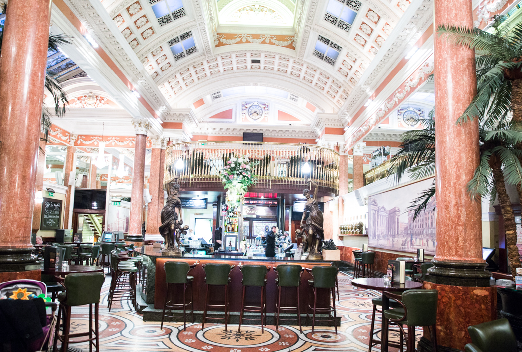 Bank on Collage Green (20 College Green). Vanhaan pankkisaliin rakennettu ravintola huokuu tyylikkyyttä kristallikruunuineen, koristeellisine sisustuksineen sekä arvokkuutta huokuvine pankkiholveineen. Tunnelmaa tuovat niin takoissa loimuava tuli kuin eksoottiset palmupuut, puhumatta tietenkään live-pianokonserteista. Tänne kannattaa tulla myöhäiselle lounaalle tai vaikkapa iltapäiväkahville nauttimaan kupillinen Irish Coffeeta.