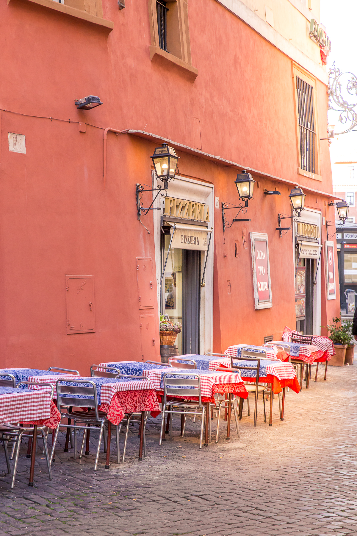 Suosittelenkin bookkaamaan majapaikan Trasteverestä, jolloin päivän päätteeksi omasta majapaikasta ei tarvitse lähteä kauemmas ravintoloita etsimään. Trasteverestä löytyy monia Airbnb-vaihtoehtoja, lisäksi pienellä etsimisellä myös suht edullisia hotelleja. Yövyin itse viihtyisässä Hotel San Francescossa*, joka sijaitsi erinomaisella paikalla aivan ravintolakatujen läheisyydessä, eikä valittamista ollut myöskään hotellin kattoterassilta avautuvista näkymistä. Bookkausta tehdessä kannattaa kuitenkin pyytää sisäpihan puoleinen huone. Trasteverestä voi hyvin reippailla Rooman nähtävyyksillä, mutta jos laiskotuttaa niin vinkkinä, että taksi lähes minne tahansa päin Rooman keskustaa kustantaa alle tai noin 10 euroa.